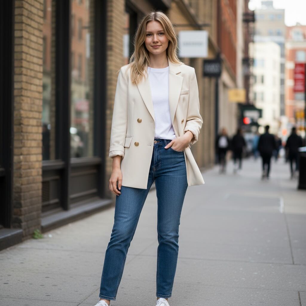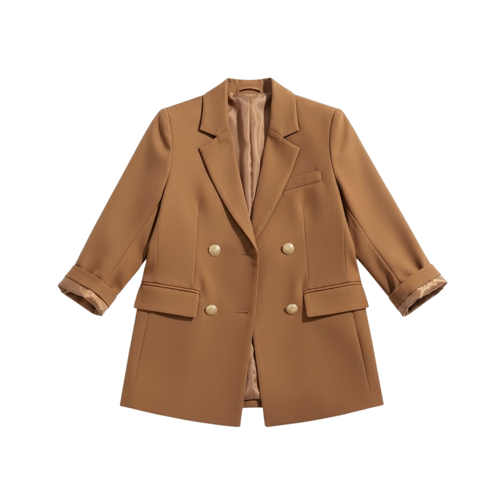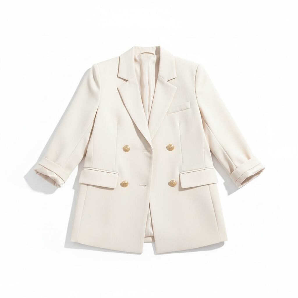 オフィスシーンからカジュアルシーンまで幅広く着回せるマスキュリンなWブレストジャケットです。4ツ釦のひとつ掛けなので前を開けた時にフロントの開き方が美しく、かしこまりすぎないラフなスタイリングが叶います。