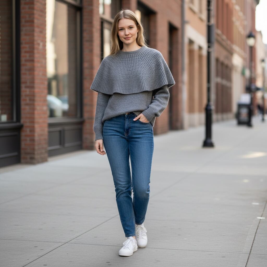 ポンチョ付きニット