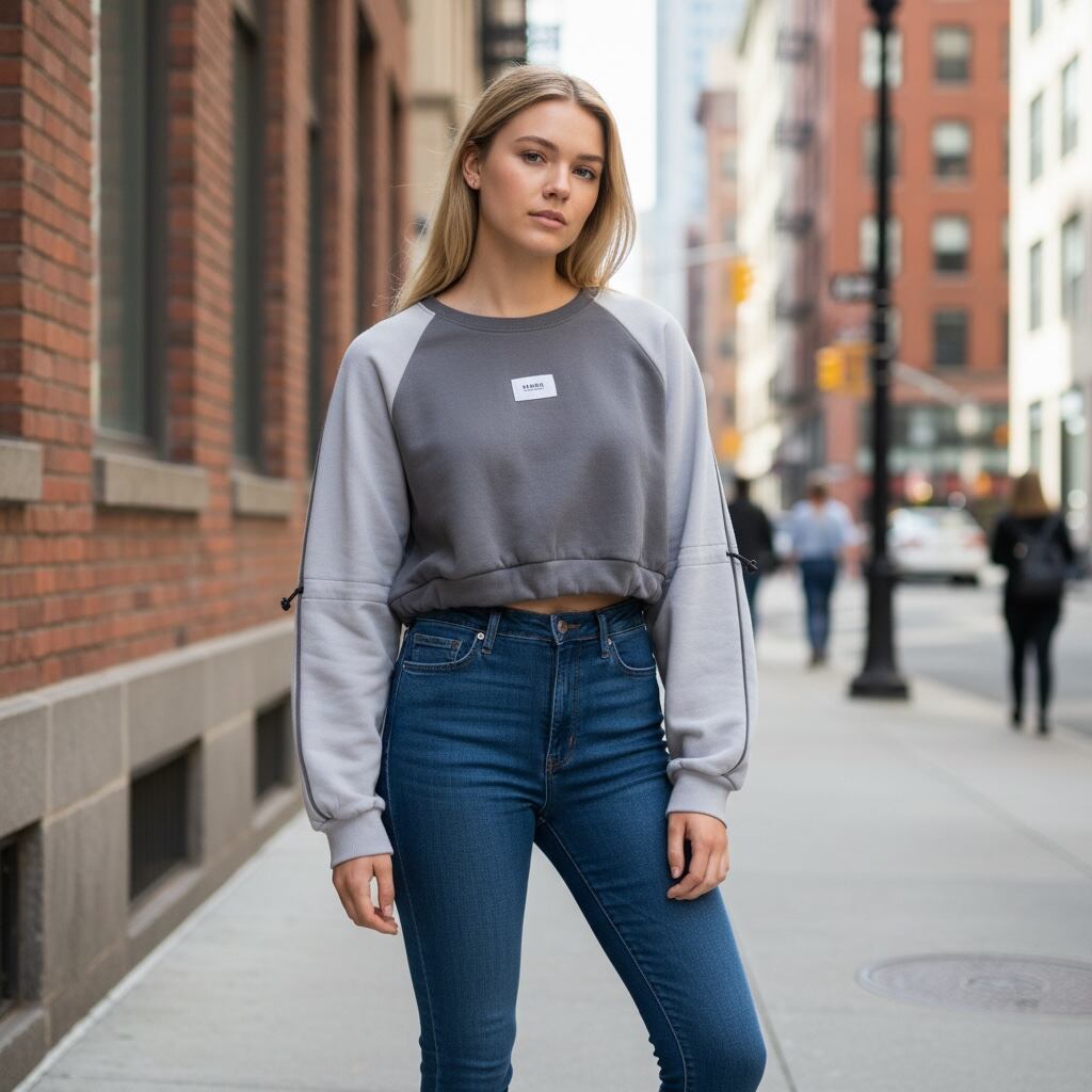 ラグラン切り替えとドローコードのアクセントがスポーティな雰囲気を演出してくれるスウェットです。ショート丈なのでハイウエストなボトムとの相性が抜群です。