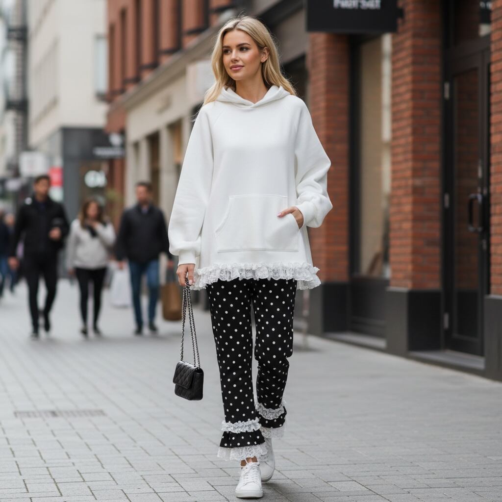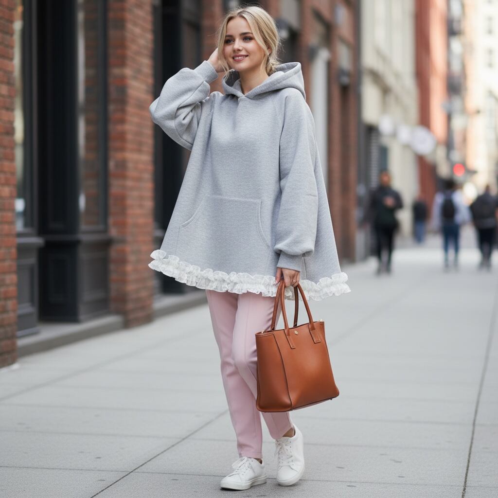 フェミニンなフリルを裾にあしらったキュートなデザインのパーカーです。張りのあるAラインシルエットが体型をカバーしてスタイルアップを叶えてくれます。