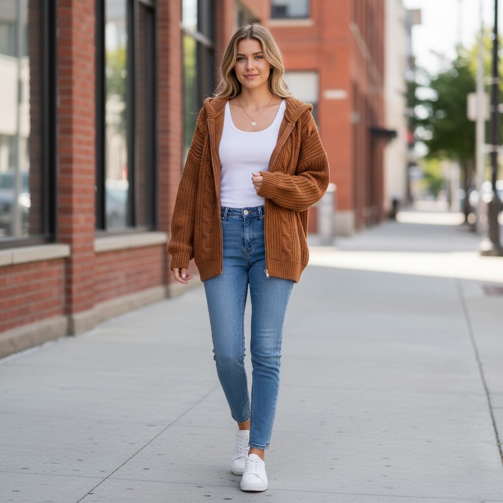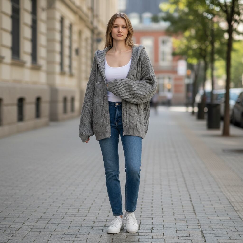 ケーブル編がウォーミーな雰囲気のニットパーカーです。ベーシックなデザインで着回しやすく、ゆったりしたサイズでリラクシングなスタイルにぴったりの一着です。