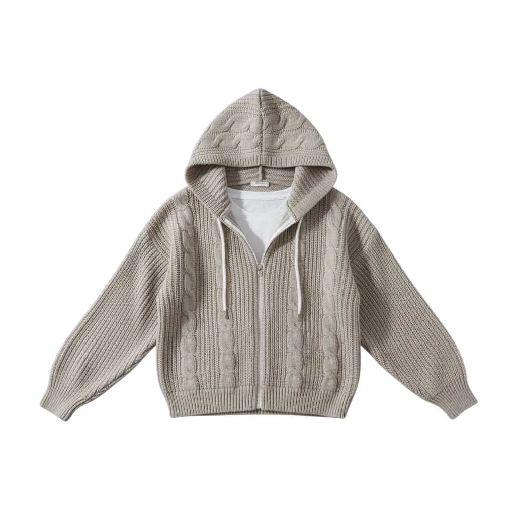 ケーブルニットパーカー