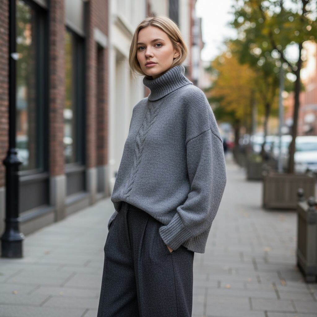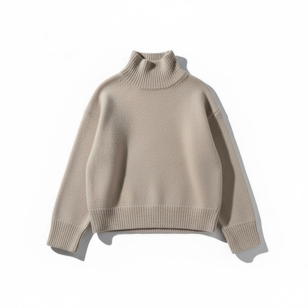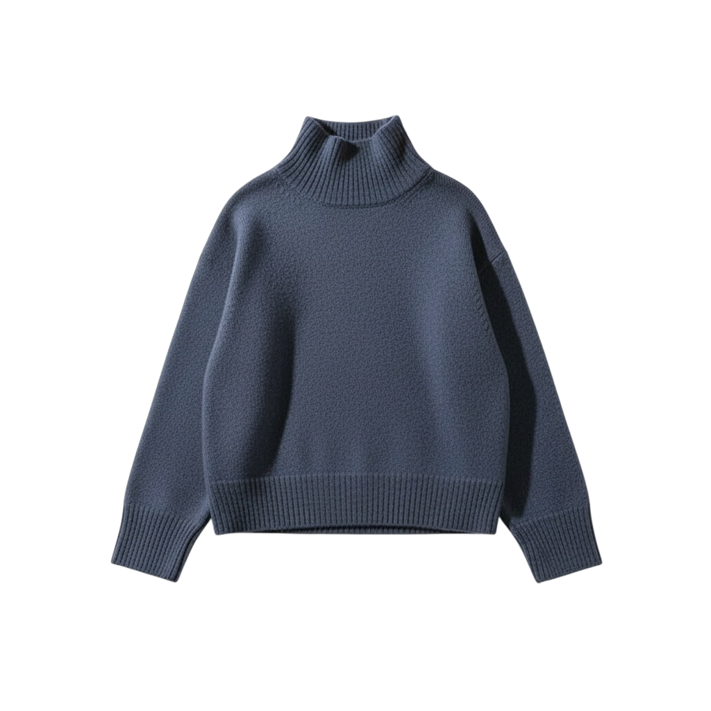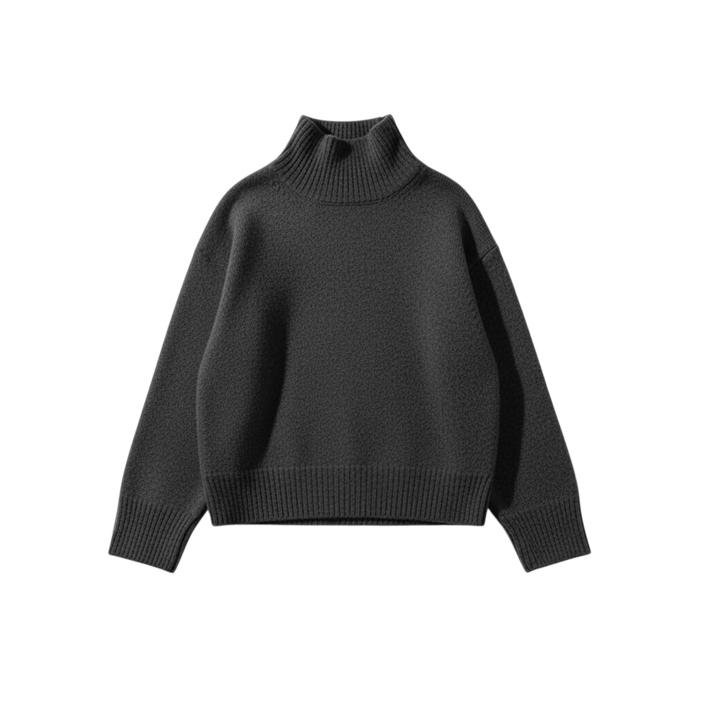 オーバーサイズのベーシックなタートルニットです。シンプルで着回しのきくエッセンシャルなアイテムです。