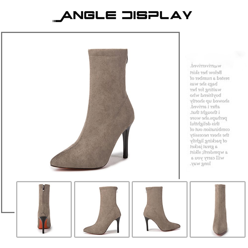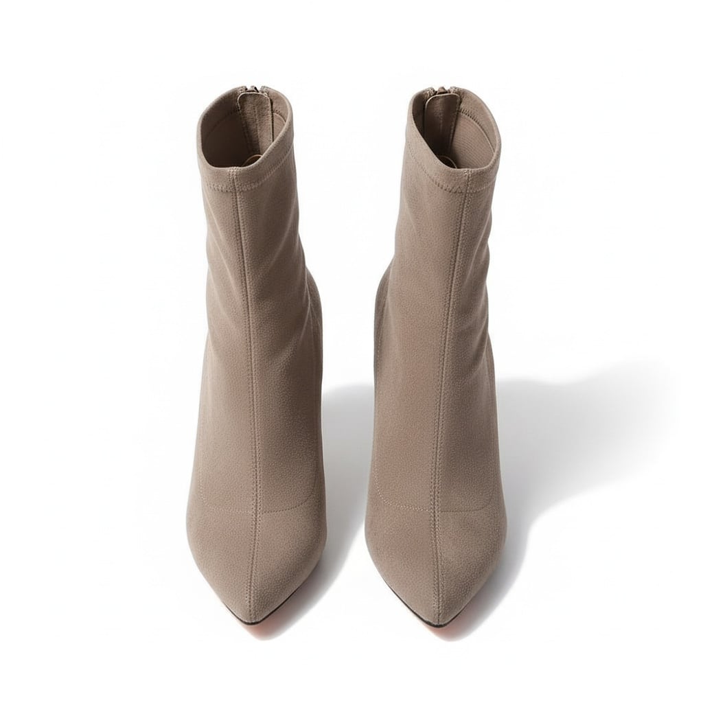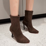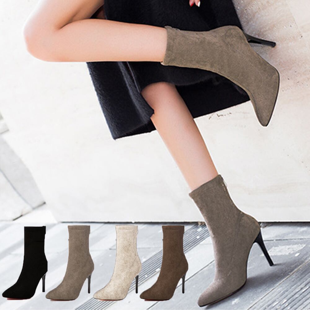 華奢なピンヒールが女性らしい雰囲気を演出してくれるショートブーツです。ソール裏の配色が足元のアクセントになる特別感のある一足です。
