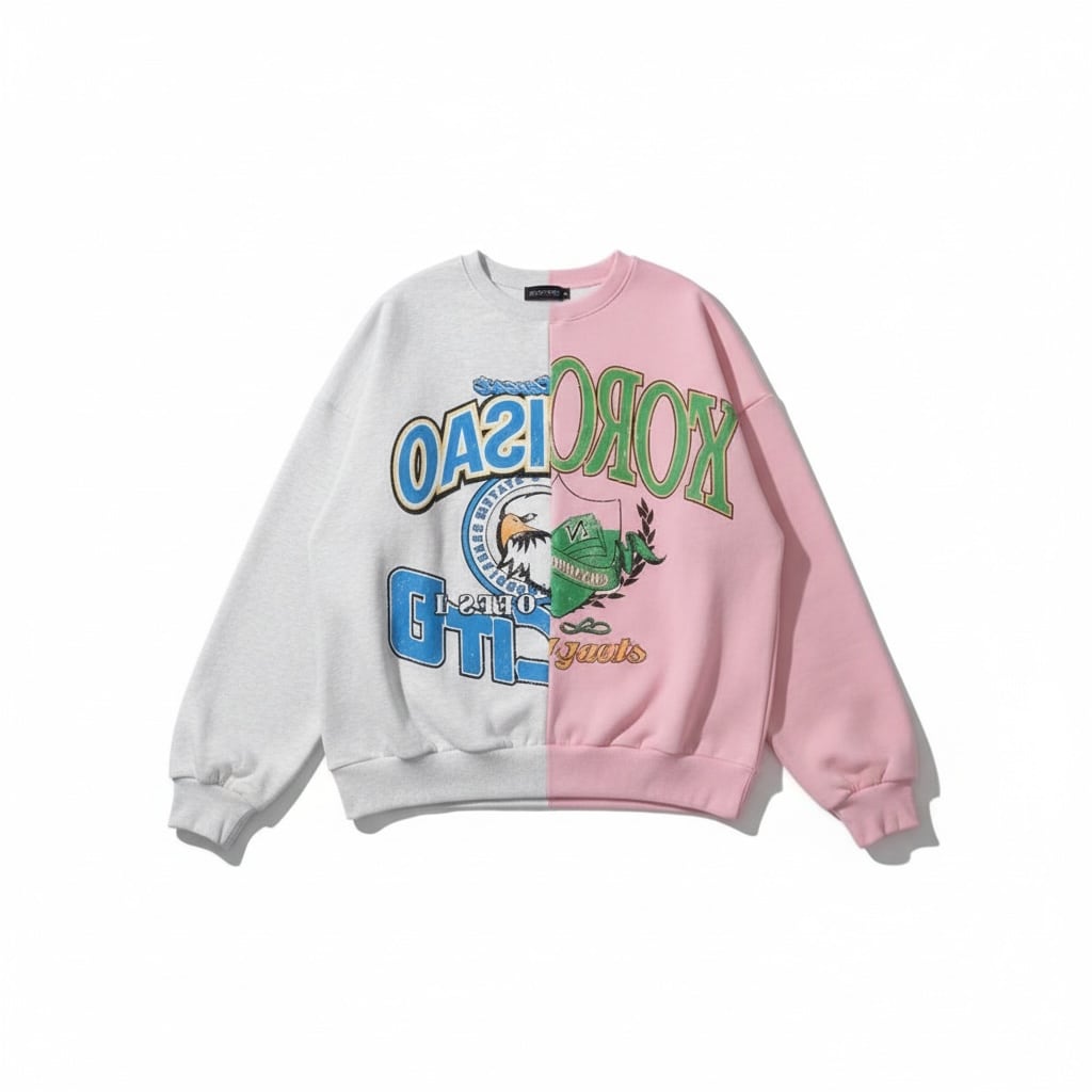 リメイク切替スウェットは、ヴィンテージ感のあるデザインが魅力の一枚です。リメイクされたパッチワークの切替部分が、他では見られない個性的な雰囲気を演出します。カレッジプリントのデザインにも遊び心が感じられる一着です。一枚でコーディネートの主役になるデザインが魅力のスウェットです。