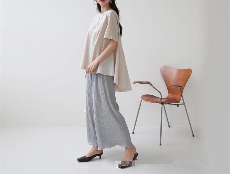 背中から見たときにふんわりとしたボリュームのあるバックフレアペプラムTシャツ。360度どこから見ても着映えして女性らしさを引き立てるデザインです。サラッとした肌触りの生地で、夏にもぴったりな一枚です。パンツとの相性も抜群で、コーディネートが一気に今っぽい雰囲気に仕上がります。