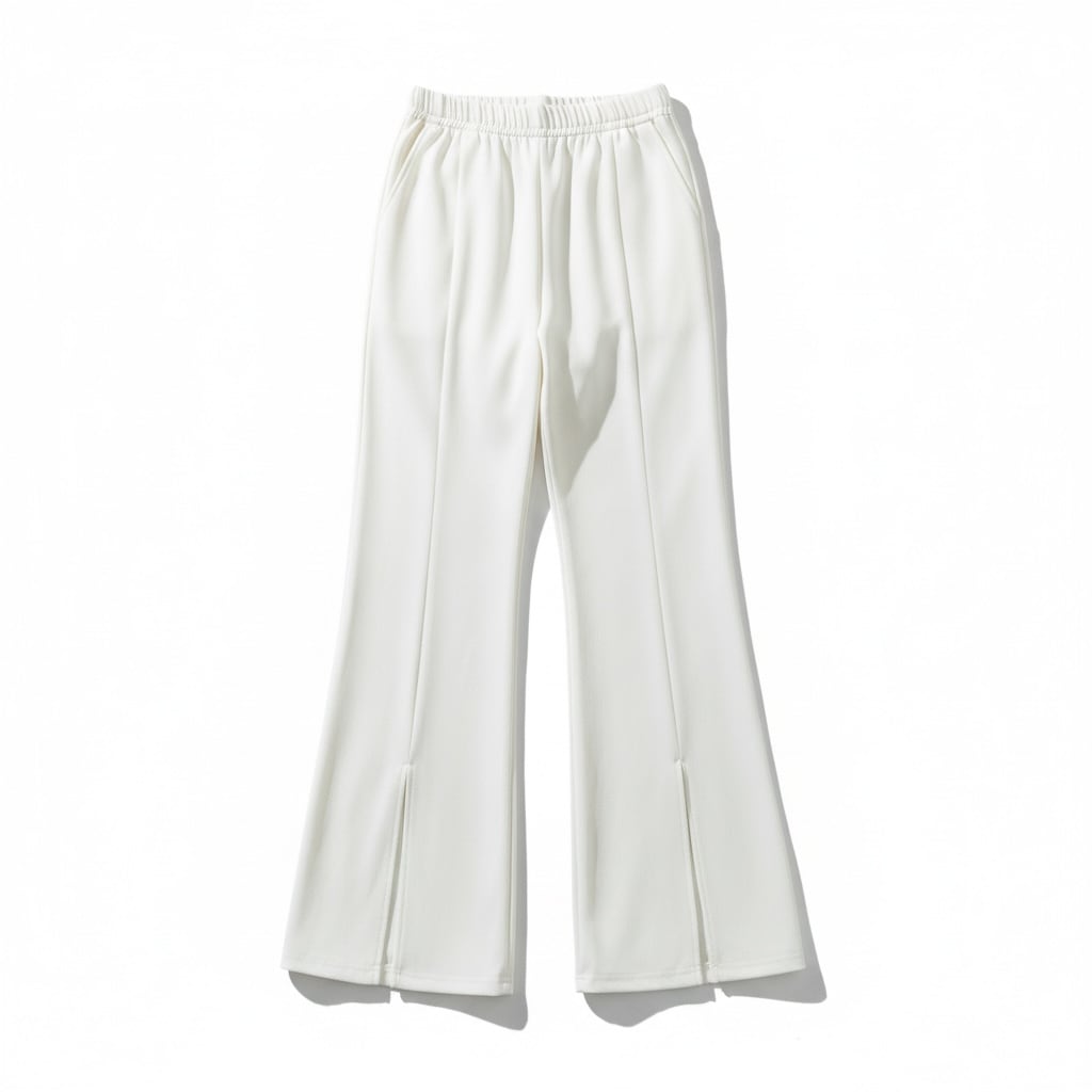 肌触りの良い素材で仕立てられたセンタースリットフレアパンツ。裾のスリットが抜け感を演出し、トレンド感溢れる一着です。フワッと広がるフレアシルエットは、女性らしさを引き立てるだけでなく、動きやすさも兼ね備えています。ウエストゴム仕様なので締め付けもなくストレスフリーに着用いただけます。