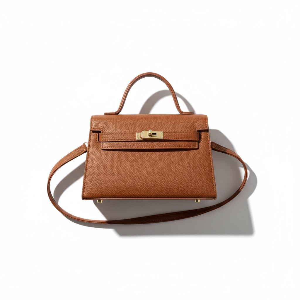 クラシックな台形シルエットのショルダー付ハンドバッグです。ケリー風のメタルパーツが高級感を出し、パーティやお出掛けなどの特別なシーンにも対応できるアイテムです。