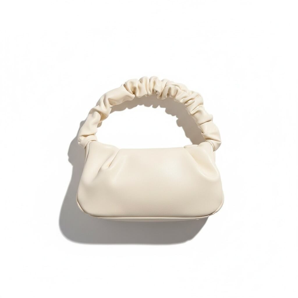 ミニマルで洗練されたフォルムながら、ハンドル部分のギャザーアクセントがモードな印象のハンドバッグ。クリーンな色合いも今っぽいスタイリングにぴったりのアイテムです。