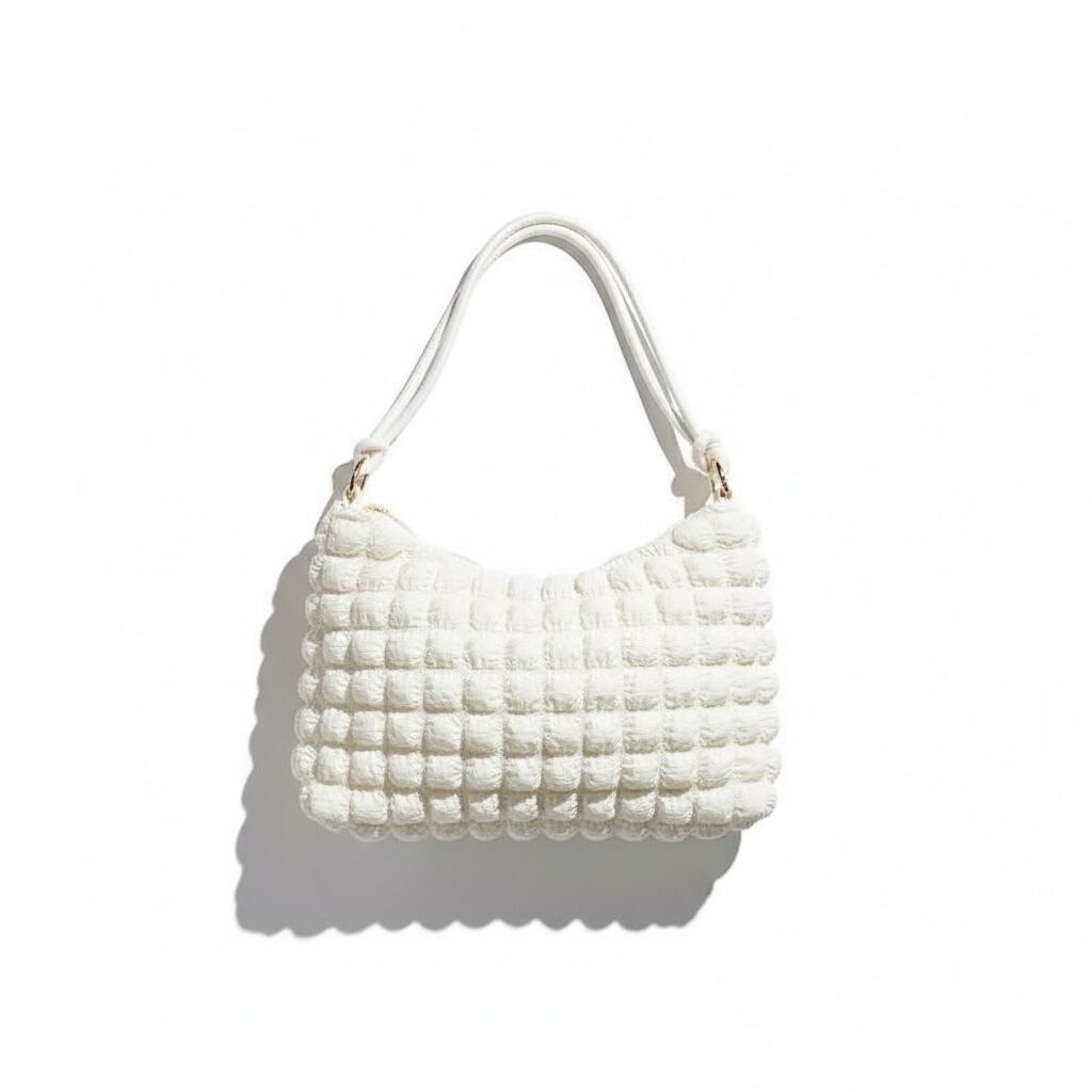 ポコポコ素材のワッフル生地が今っぽいハンドバッグ。柔らかいフェミニンなカラーリングでスタイリングを春らしく華やかにしてくれます。